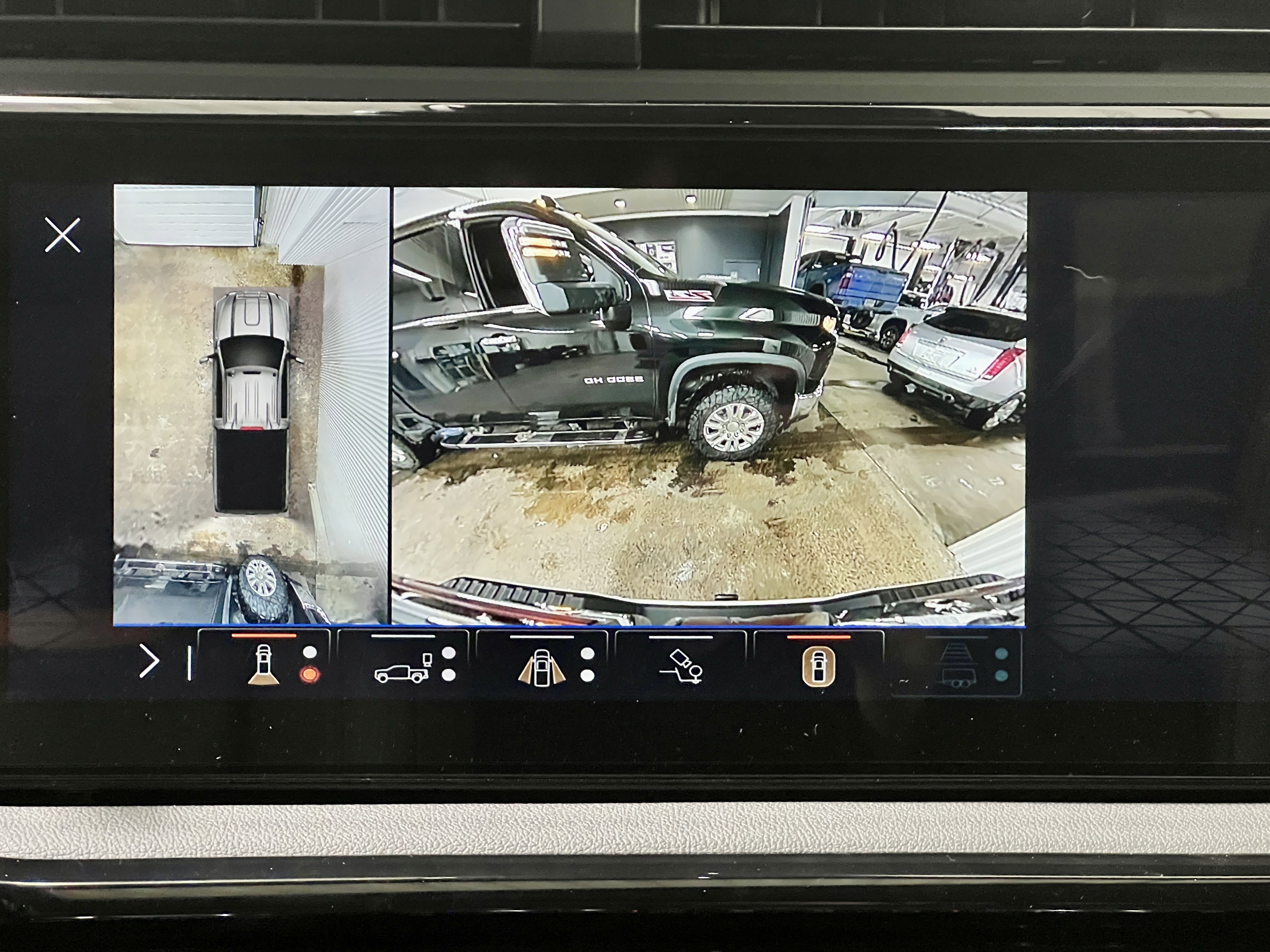 - Allows driver to see inside the cargo bed on the infotainment display to help with 5th wheel or gooseneck hitching and to check cargo
