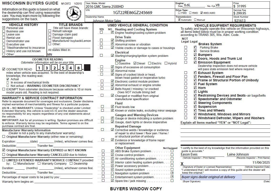 Price does not include sales tax, title, registration, or $299.95 service fee.