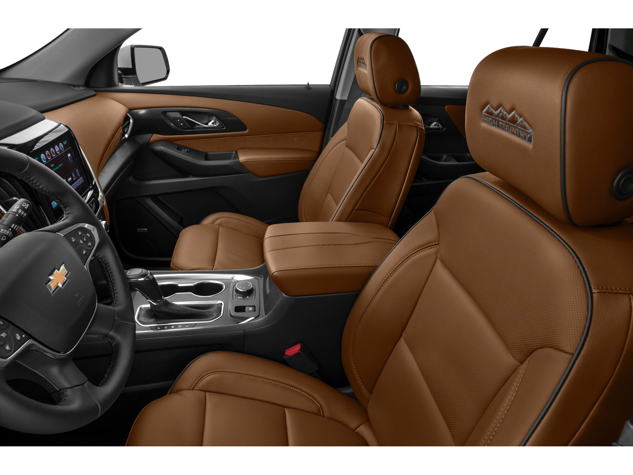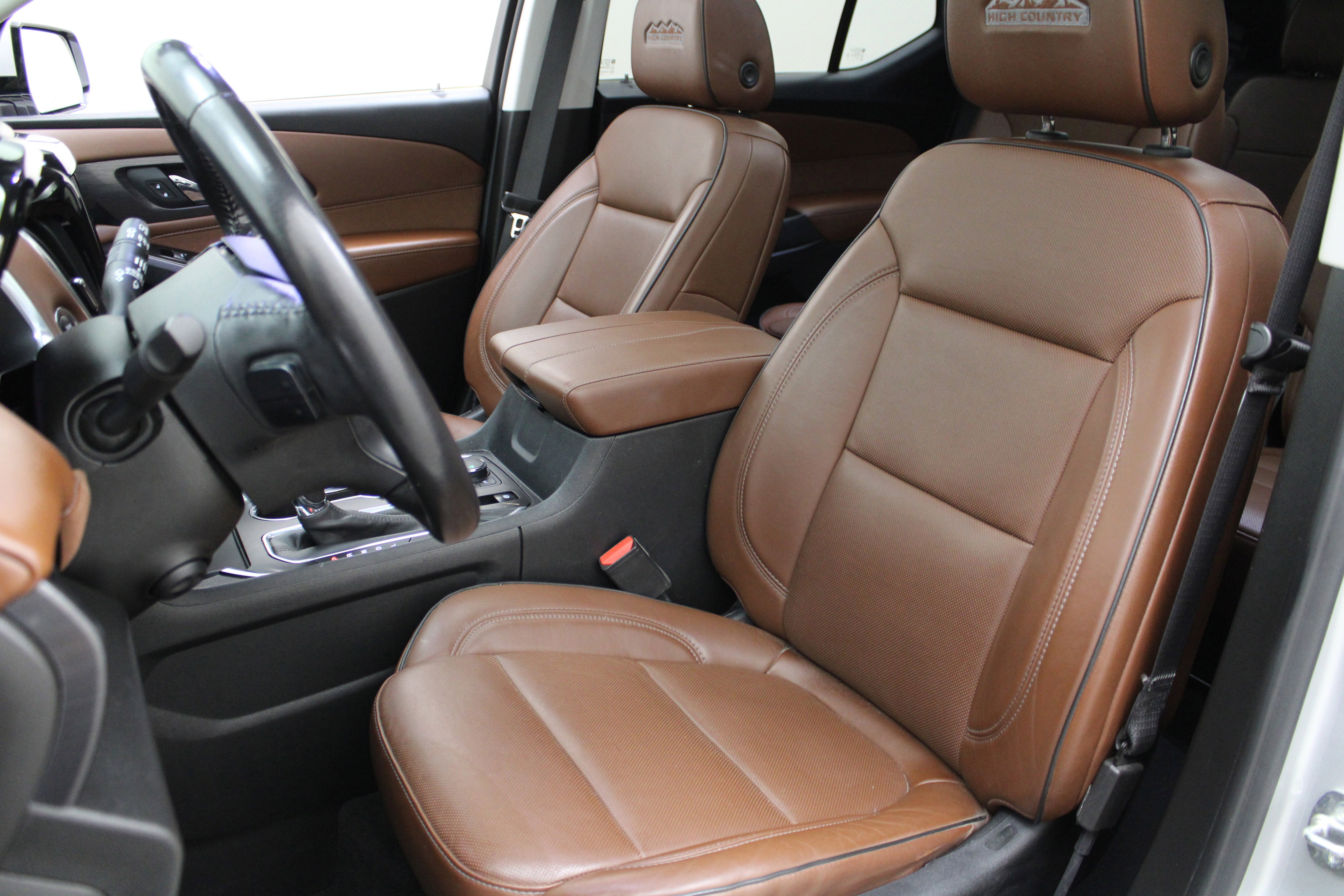 LICENSE PLATE FRONT MOUNTING PACKAGE (will be forced on orders with ship-to states that require a front license plate) , JET BLACK/LOFT BROWN, PERFORATED LEATHER-APPOINTED SEAT TRIM, HIGH COUNTRY PREFERRED EQUIPMENT GROUP Includes Standard Equipment, ENGINE, 3.6L V6, SIDI, VVT (310 hp [232.0 kW] @ 6800 rpm, 266 lb-ft of torque [361 N-m] @ 2800 rpm) (STD), AUDIO SYSTEM, CHEVROLET INFOTAINMENT 3 PREMIUM SYSTEM with connected Navigation, 8 diagonal HD color touchscreen, AM/FM stereo, Bluetooth® audio streaming for 2 active devices, Apple CarPlay and Android Auto capable, enhanced voice recognition, additional memory for in-vehicle apps, cloud connected personalization for select infotainment and vehicle settings. Subscription required for enhanced and connected services after trial period (STD), Wireless Charging for devices, Wipers, front intermittent with washers, Wiper, rear intermittent with washer, Windows, power with driver Express Up/Down and front passenger Express-Down, Wheels, 20 (50.8 cm) polished aluminum.
