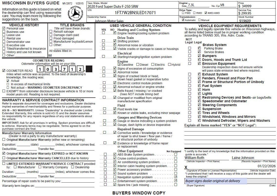 Price does not include sales tax, title, registration, or $299.95 service fee.