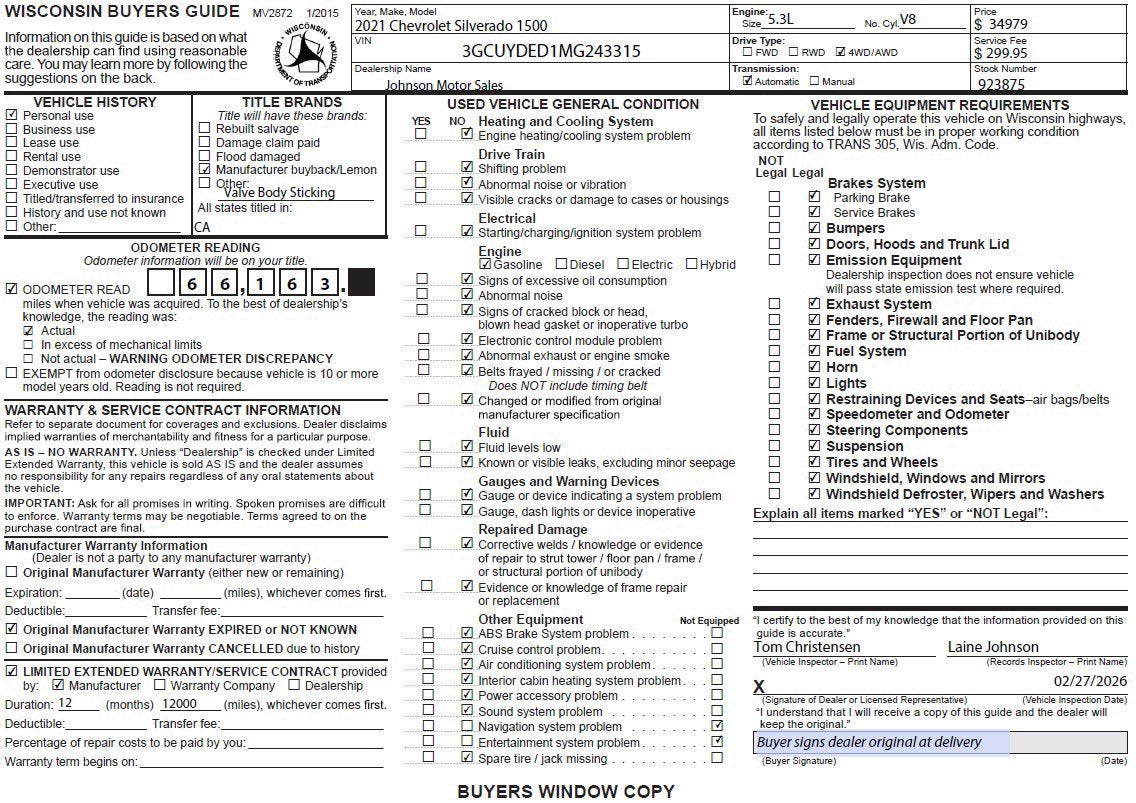 Come in for a quick visit at Johnson Motor Sales, 620 Deere Dr, New Richmond, WI 54017 to claim your Chevrolet Silverado 1500!