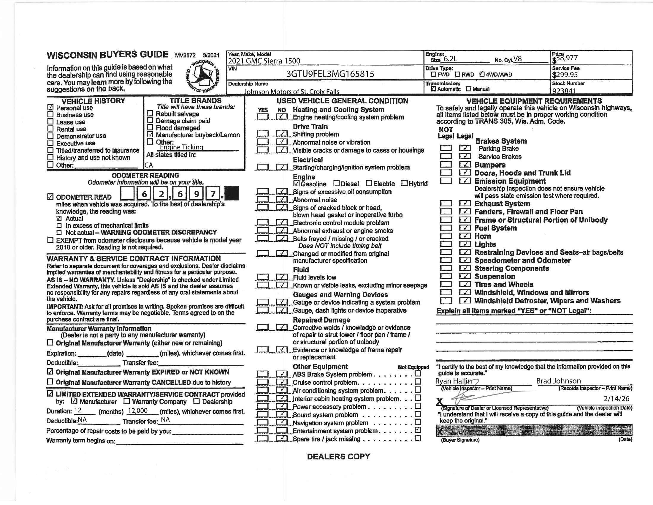 Dealer Comments