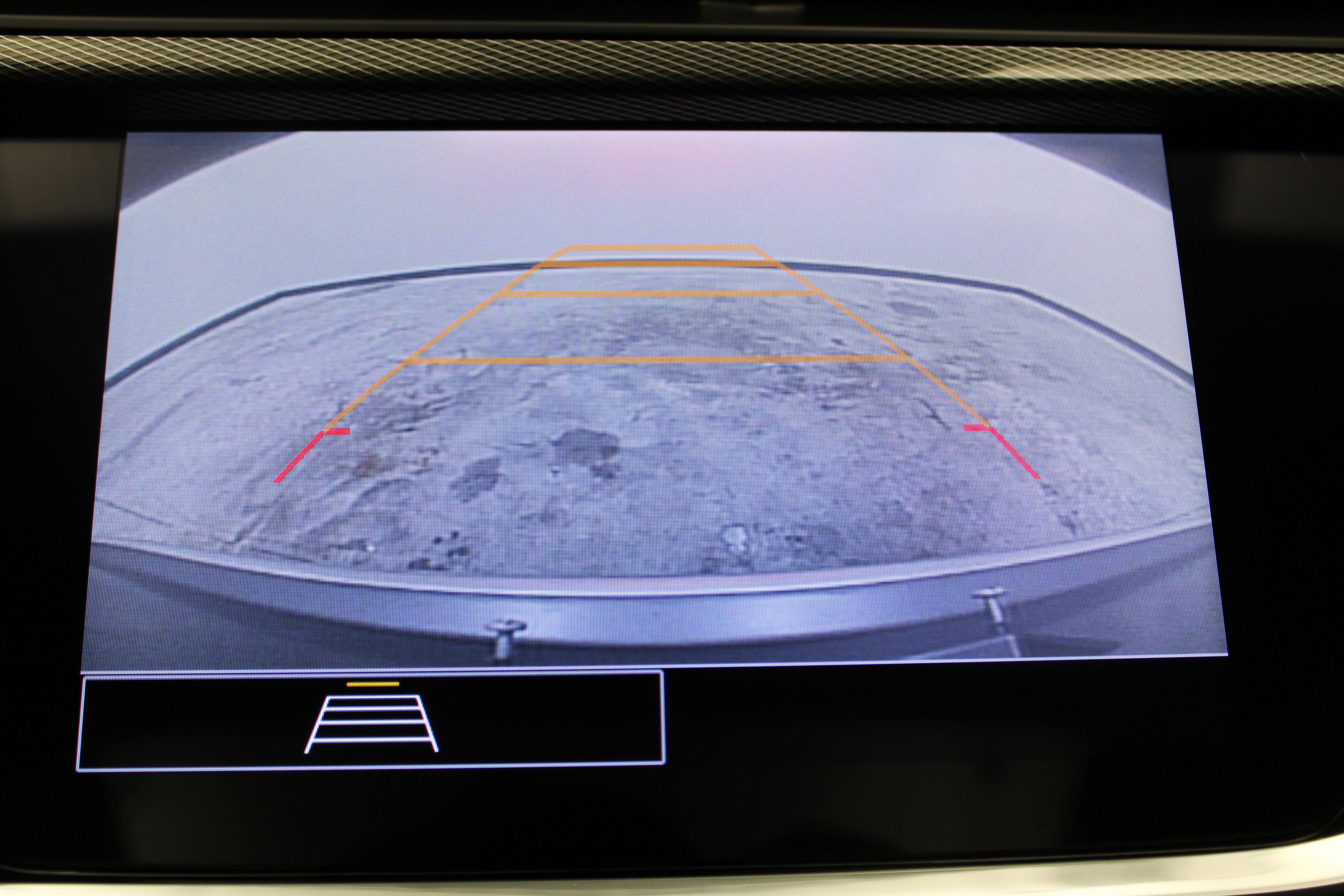 - Selectable dynamic guidelines laid over the display image assist in parking maneuvers by showing the vehicle's path