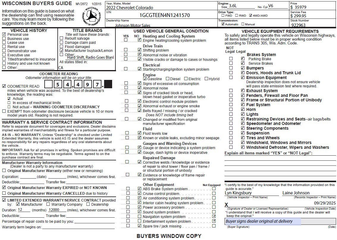 Price does not include sales tax, title, registration, or $299.95 service fee.. bb
