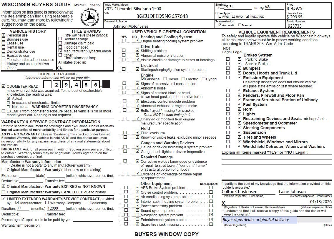 Price does not include sales tax, title, registration, or $299.95 service fee.. bb