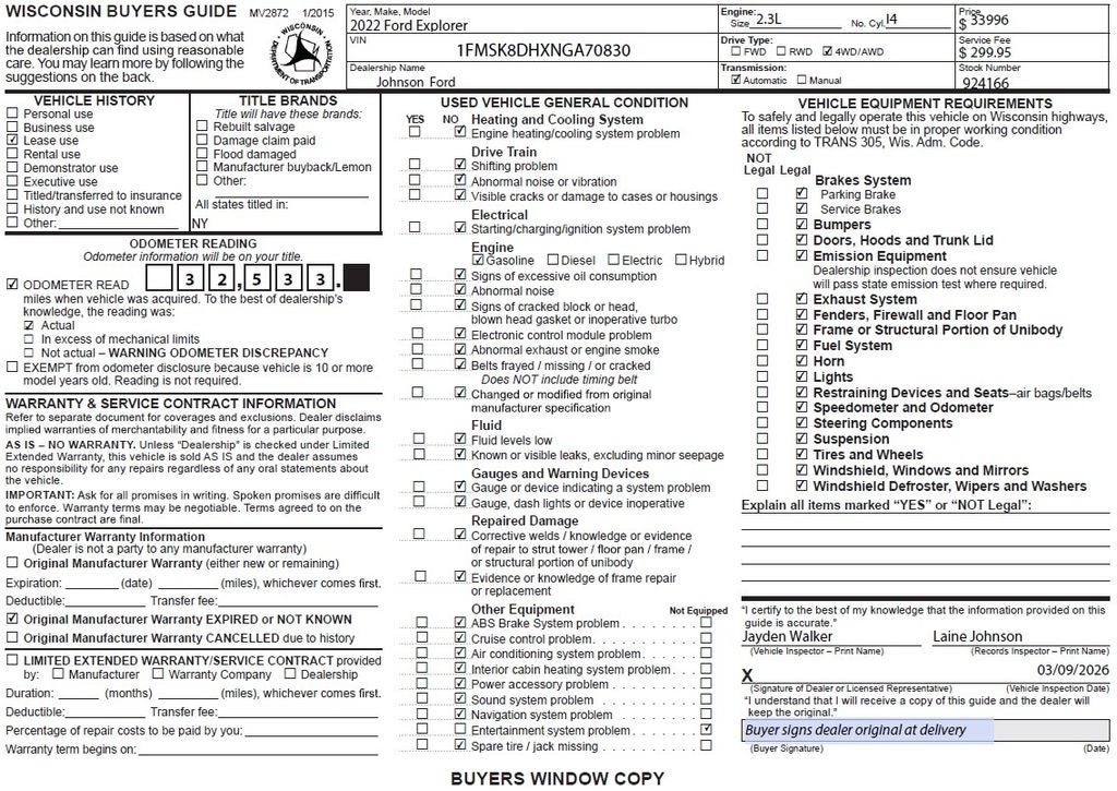 - Vehicle Name: Ford Explorer
