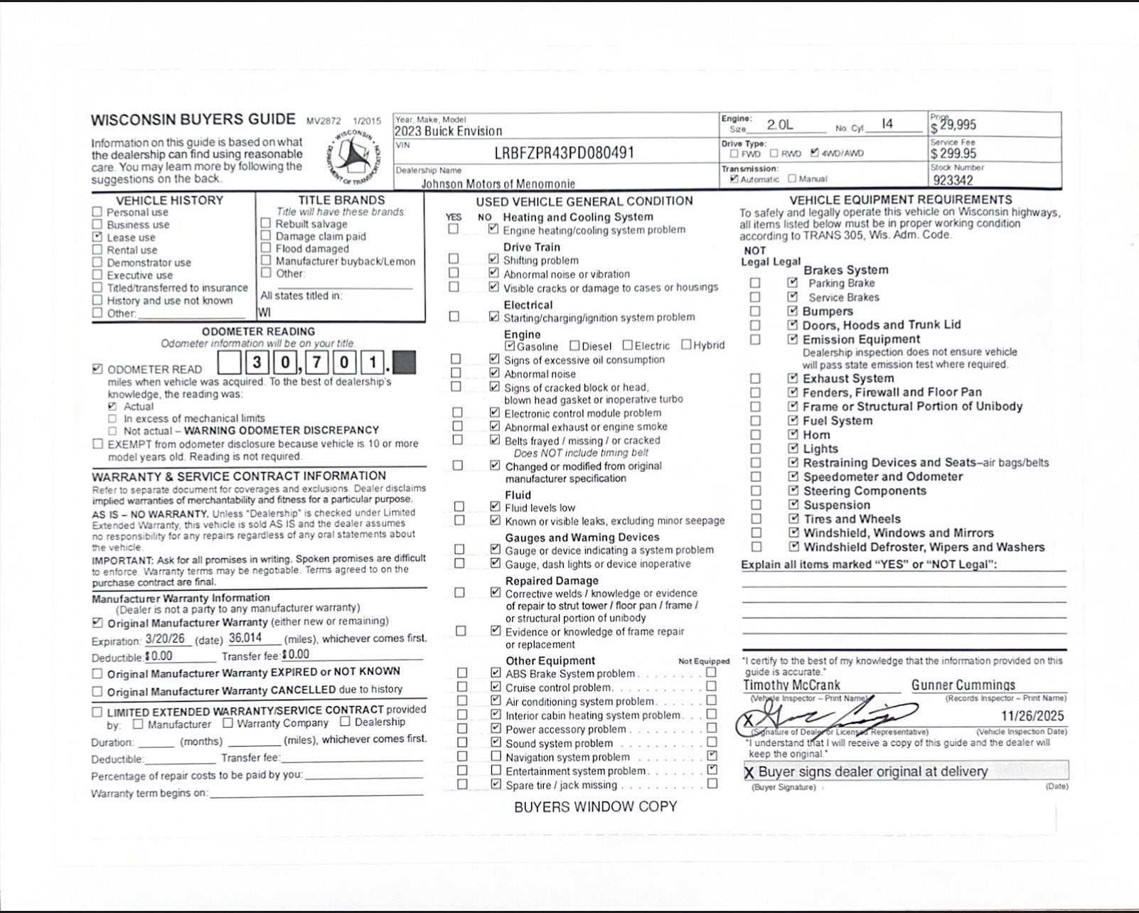 Price does not include sales tax, title, registration, or $299.95 service fee.