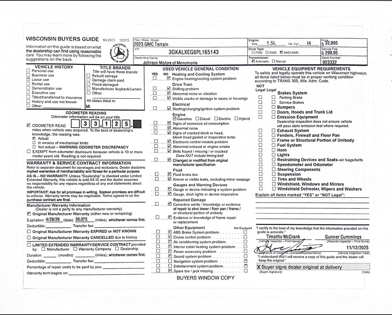 Price does not include sales tax, title, registration, or $299.95 service fee.