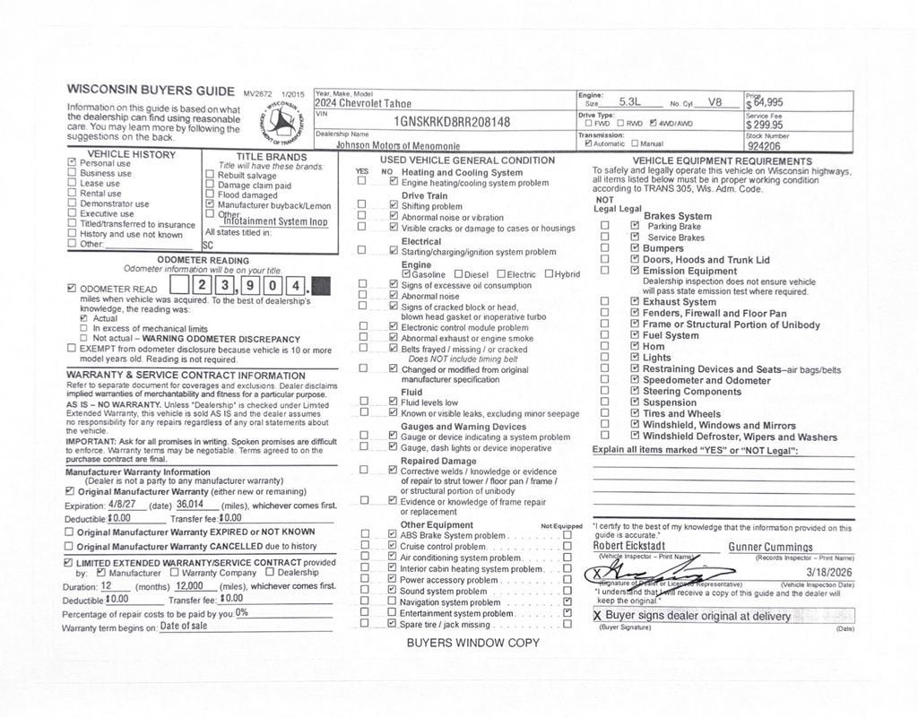 Price does not include sales tax, title, registration, or $299.95 service fee.