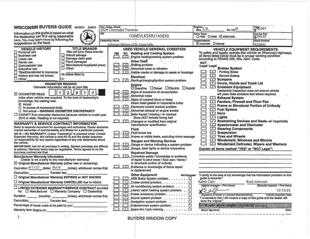 CarBravo 2024 Chevrolet Traverse RS