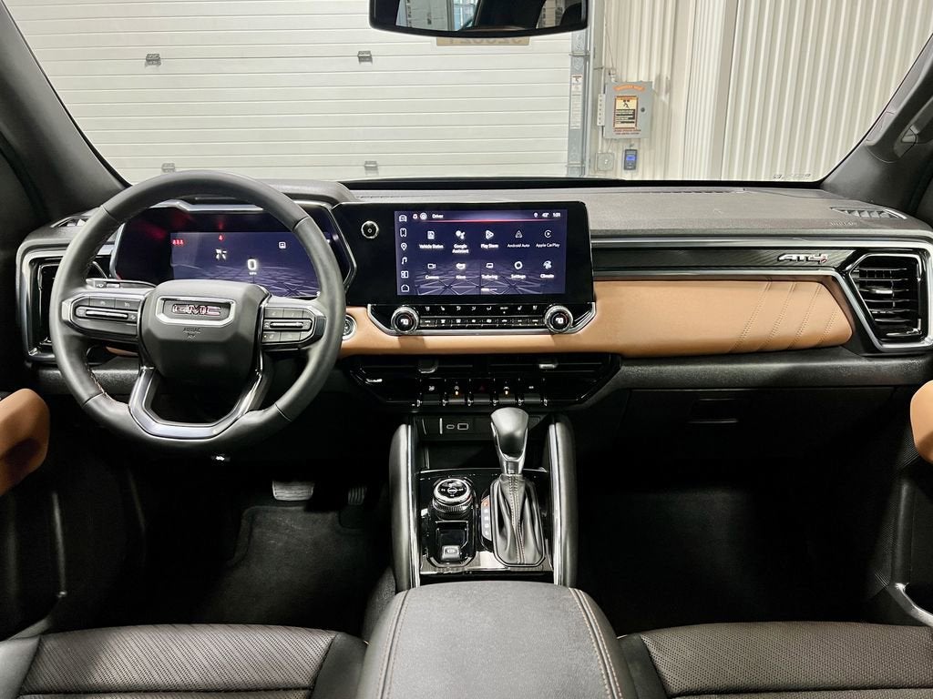 TRAILERING PACKAGE includes trailer hitch and 7-pin connector (Includes (JL1) Trailer brake controller., PROGRADE TRAILERING SYSTEM includes (U1D) In-vehicle Trailering App and (Z82) Trailering Package, CONVENIENCE PACKAGE, AT4 PREMIUM PACKAGE includes (HX6) Jet Black/Timber perforated leather-appointed front seating surfaces, (A45) Driver memory recall, (A7J) 6-way front passenger seat, (AT9) Power Lumbar front passenger seat, (DA5) Rear Seat Center Arm Rest, (E90) Driver seat back pocket, (K4C) Wireless charging, (KI3) heated steering wheel, (KU9) Ventilated driver and front passenger seats and (Y5W) Canyon Safety Plus Package , TRAILERING APP, SYSTEM includes checklist, trailer maintenance reminders, trailer security alerts, trailer mileage, tow/haul reminder and trailer electrical diagnostics, TRAILER BRAKE CONTROLLER, INTEGRATED, TIRES, LT275/65R18C MT BLACKWALL, TIRE, SPARE P265/70R17SL ALL-SEASON, BLACKWALL (STD), SUNROOF, POWER INNER SLIDING GLASS with manual shade, STEERING WHEEL, HEATED.