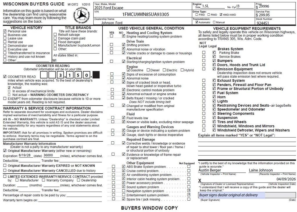 At Johnson Ford, every vehicle is market-priced daily using live third-party data across Wisconsin and Minnesota to ensure fair, competitive, upfront pricing. Our inventory includes a wide selection of used cars, used trucks, and used SUVs for sale, with a strong focus on popular Ford models such as the Ford F-150, Ford Explorer, Ford Escape, Ford Edge, Ford Ranger, and Ford Bronco, along with other trusted makes and models. Every vehicle is professionally inspected and fully reconditioned, and we proudly offer Ford Certified Pre-Owned vehicles, giving buyers added peace of mind with factory backed standards. Whether you’re shopping for AWD SUVs, capable 4x4 trucks, or reliable used vehicles priced under $15,000–$20,000, you can buy with confidence.