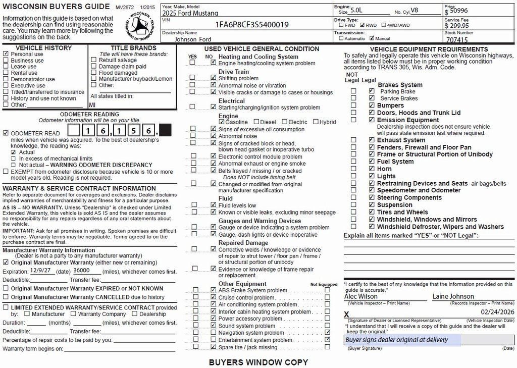 - Vehicle Name: Ford Mustang