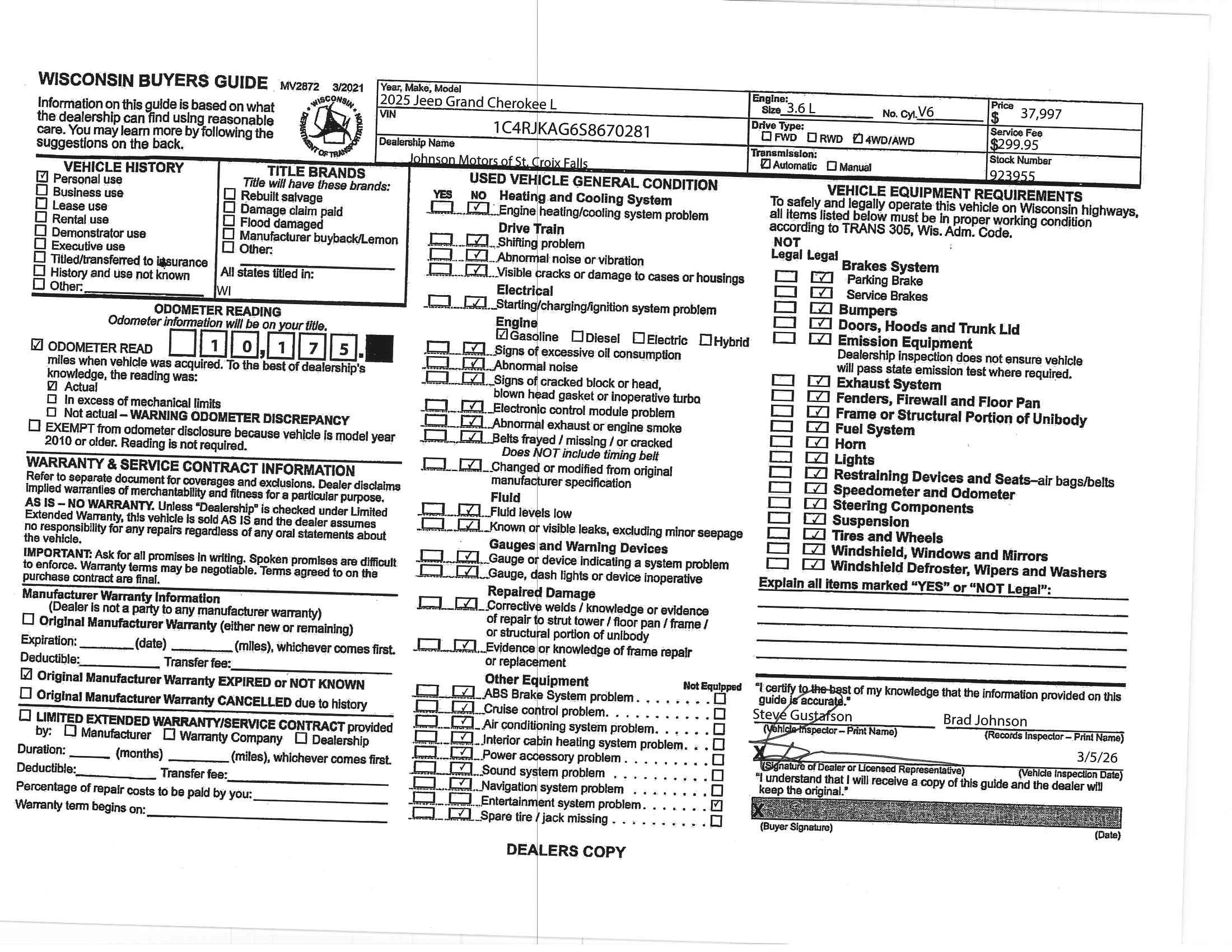 Dealer Comments